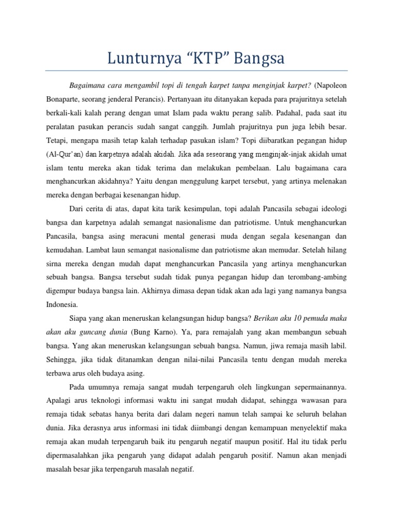 DOC) ESSAY- Semangat Nasionalisme Pemuda Indonesia dalam Memajukan Bumi Pertiwi By Martha Alfiani | martha alfiani - Academia.edu