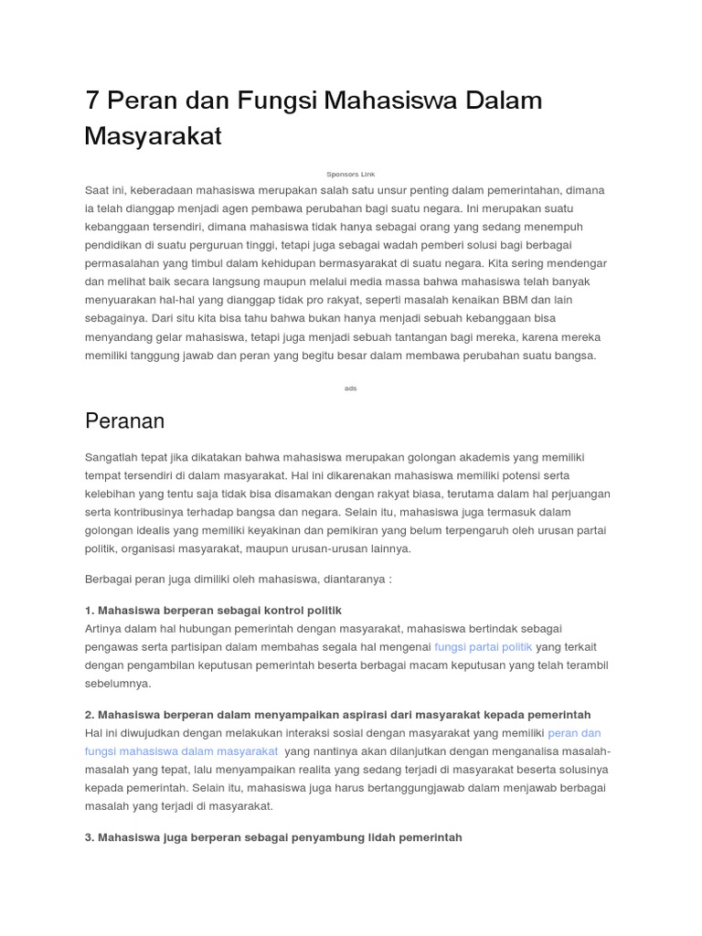 Essay tentang peran mahasiswa di masyarakat