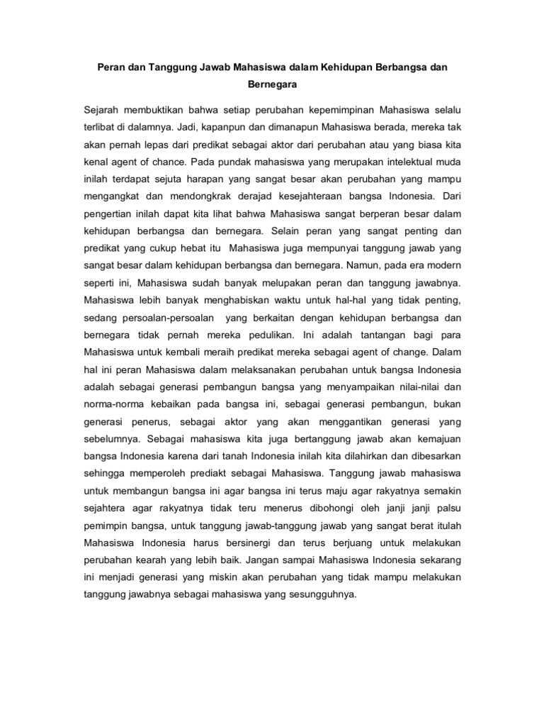 Tugas Esai Peran Dan Tanggung Jawab Mahasiswa Dalam Kehidupan Berbangsa Dan Bernegara