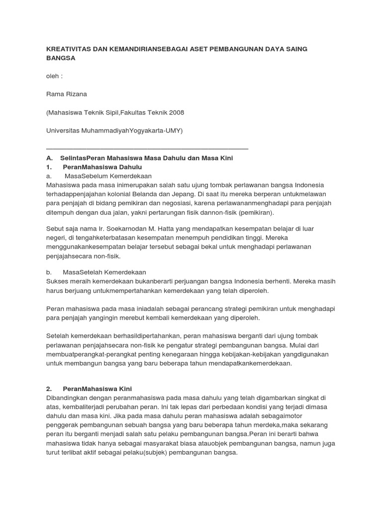 DOC) Essay peran mahasiswa | yesi yessong - Academia.edu