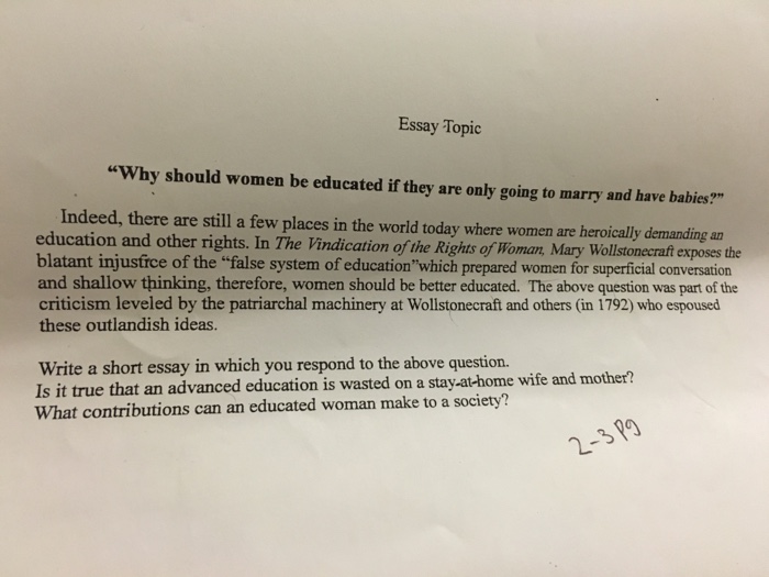 Solved: Essay Topic “Why Should Women Be Educated If They … | Chegg.com