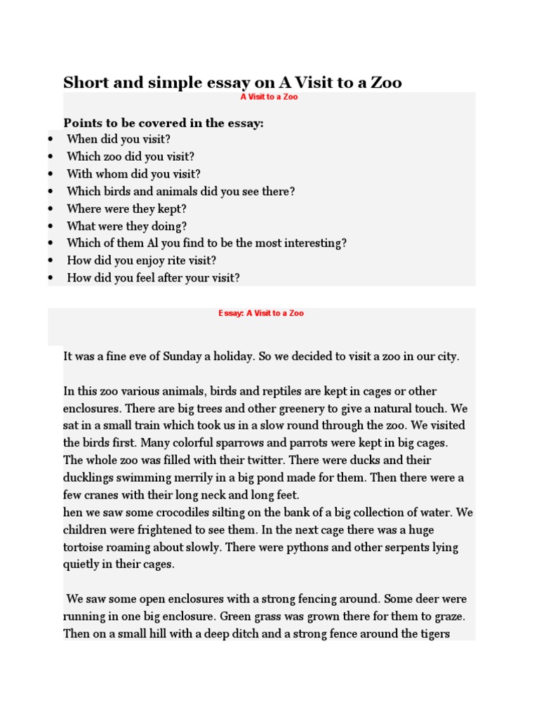 Short Essay Help Visit Zoo - A Visit to Zoo Essay