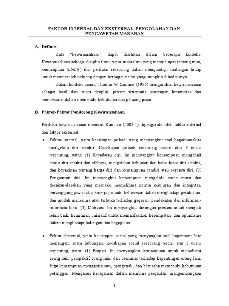 Faktor Internal Dan Eksternal Pengolahan Dan Pengawetan