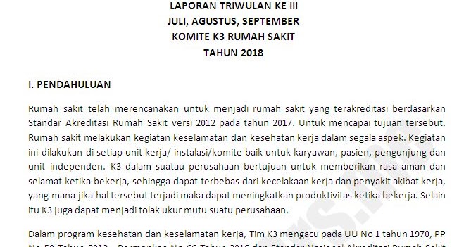 Contoh Laporan Triwulan K3RS - InfoK3RS ID