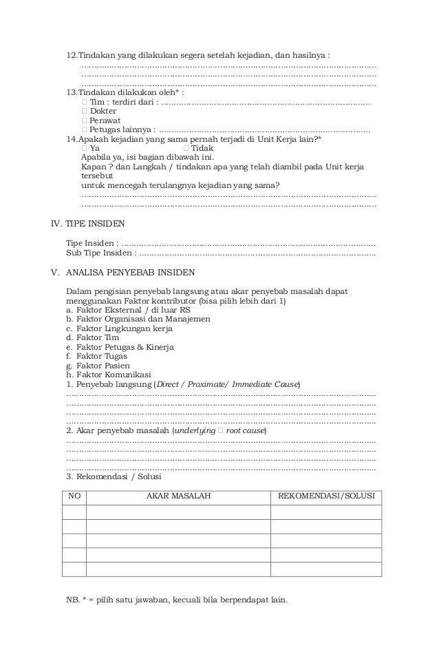DOC) FORMAT LAPORAN INSIDEN Keselamatan Pasien Akremas | Muhammad Randy - Academia.edu