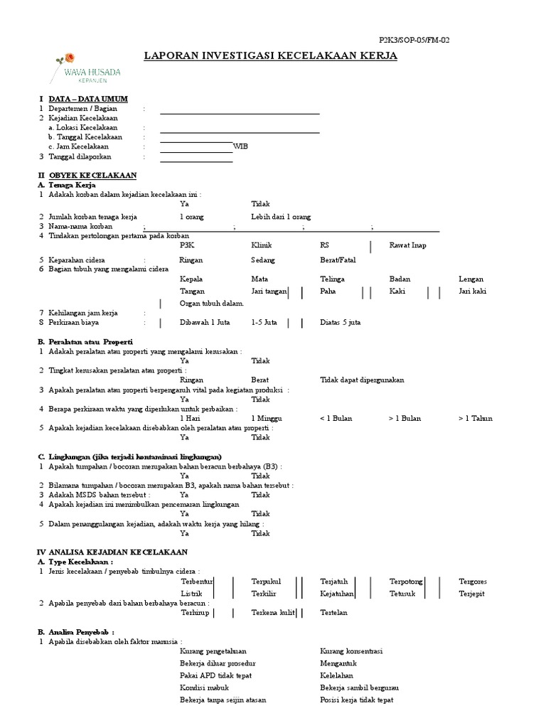Formulir Laporan Kecelakaan Kerja di Rumah Sakit - InfoK3RS ID