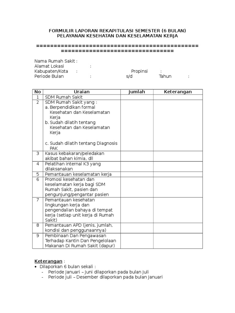 Contoh Laporan Bulanan K3 Rumah Sakit - Kumpulan Contoh Laporan