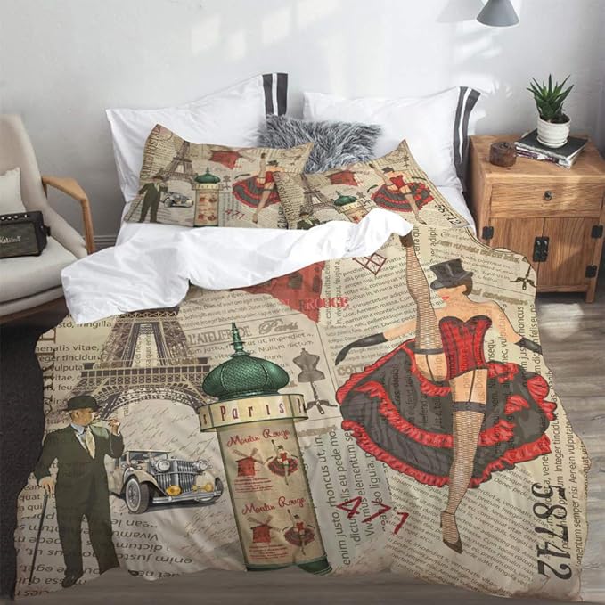 Amazon.com: WINCAN Duvet Cover King Size,Vintage Poster Paris Torn Newspaper Background,Decorative 3 Pieces Bedding Set with Zipper Closure and 2 Pillow Shams (104" 90"): Home & Kitchen
