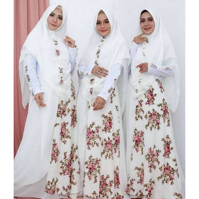 Pakaian busana muslim gamis set hijab bahan sifon cruty babydoll polos kombinasi motif putih white | Shopee Indonesia