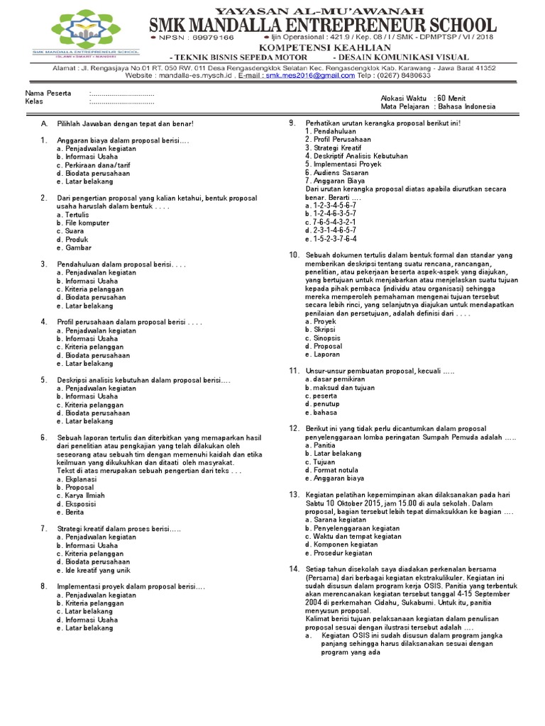 Soal Bahasa Indonesia Kelas Xi