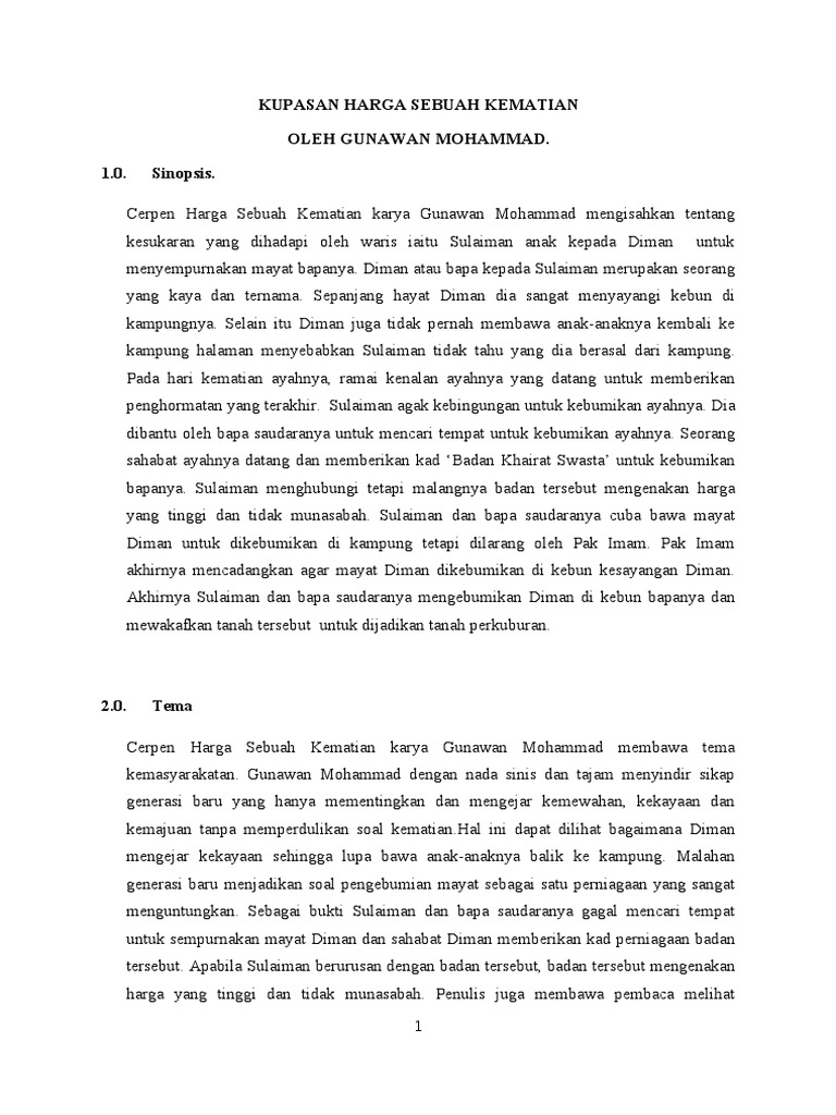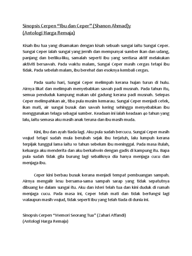 DOC) Sinopsis “Ibu dan Ceper” (Antologi Harga Remaja) Tingkatan 4 | Masri Madsali - Academia.edu