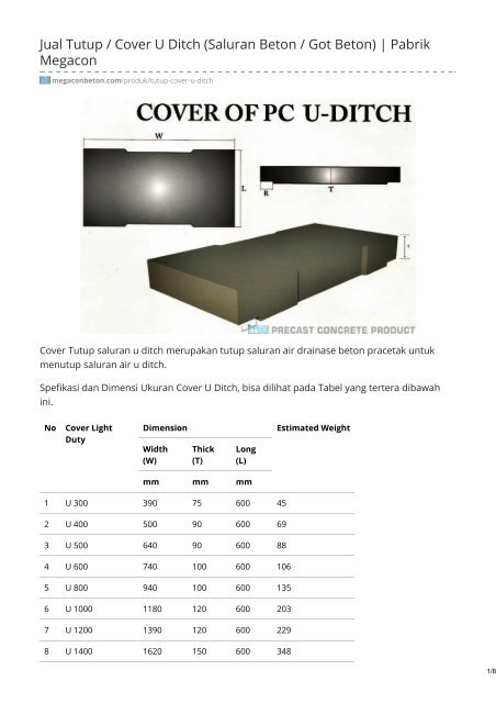 Harga U Ditch & Tutup U Ditch Megacon - Pabrik Beton Precast: U …