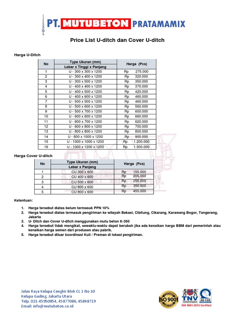 Cover U Ditch Price List | DAFTAR HARGA COVER U DITCH