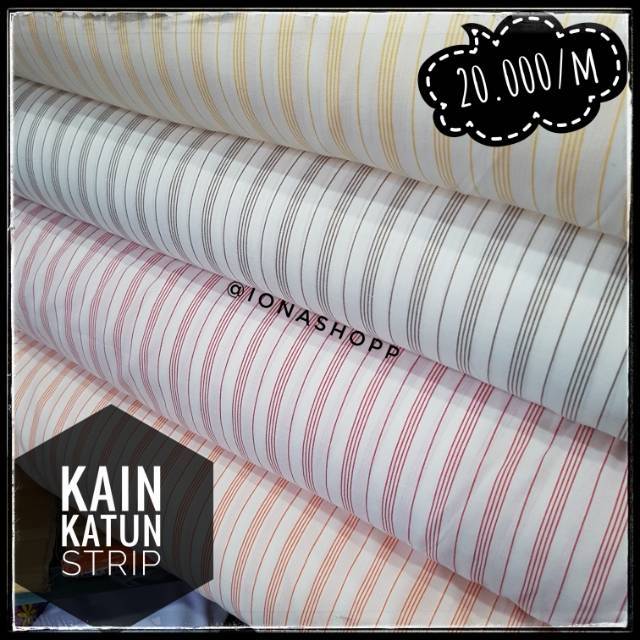 Kain katun strip dasar putih - lebar 150cm / bahan hem - harga per …