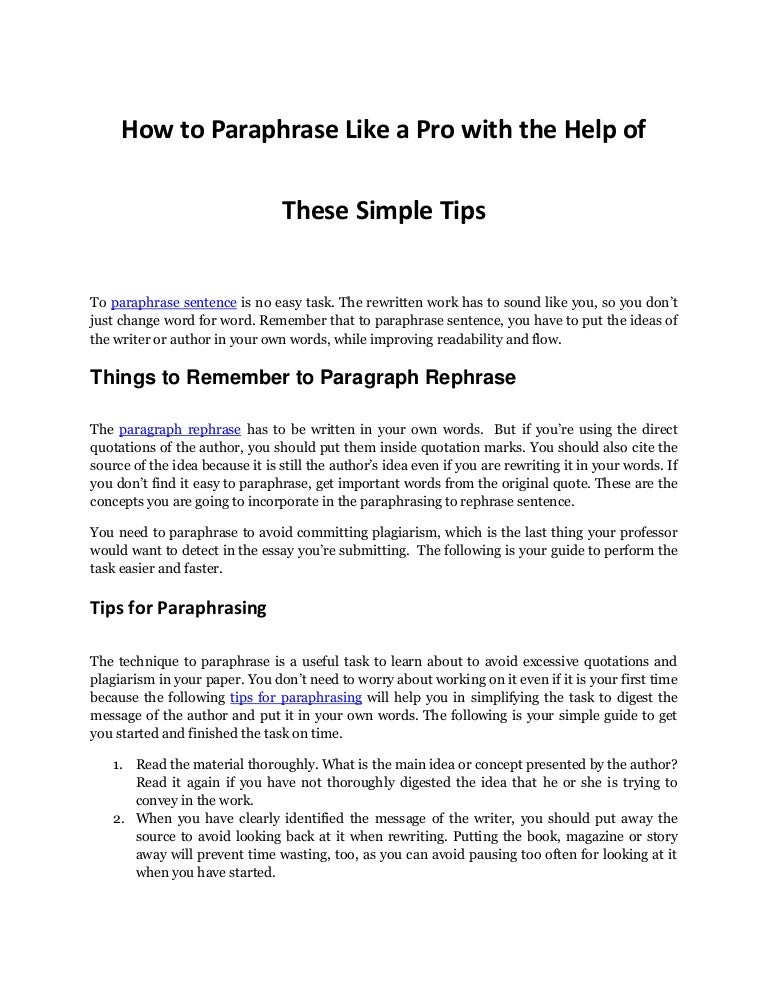 Paraphrasing essay service: Help with How to Paraphrase Essay