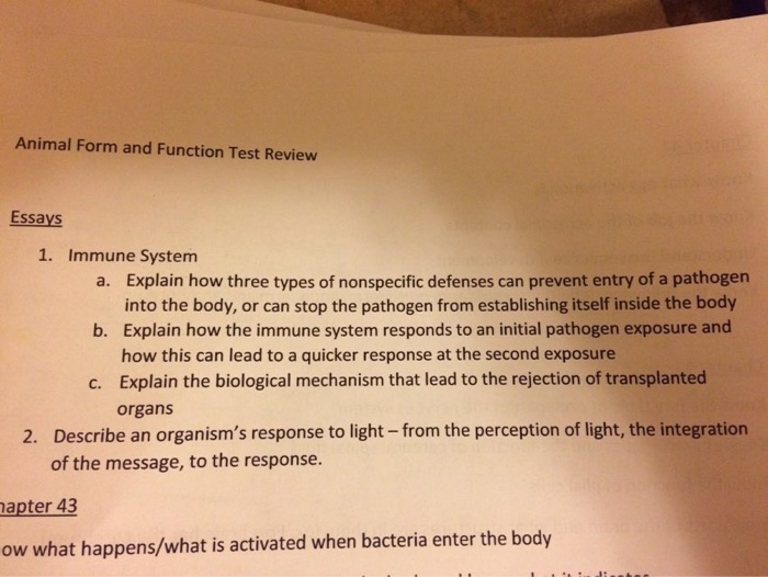 Solved: Animal Form And Function Test Review Essays 1. Imm… | Chegg.com
