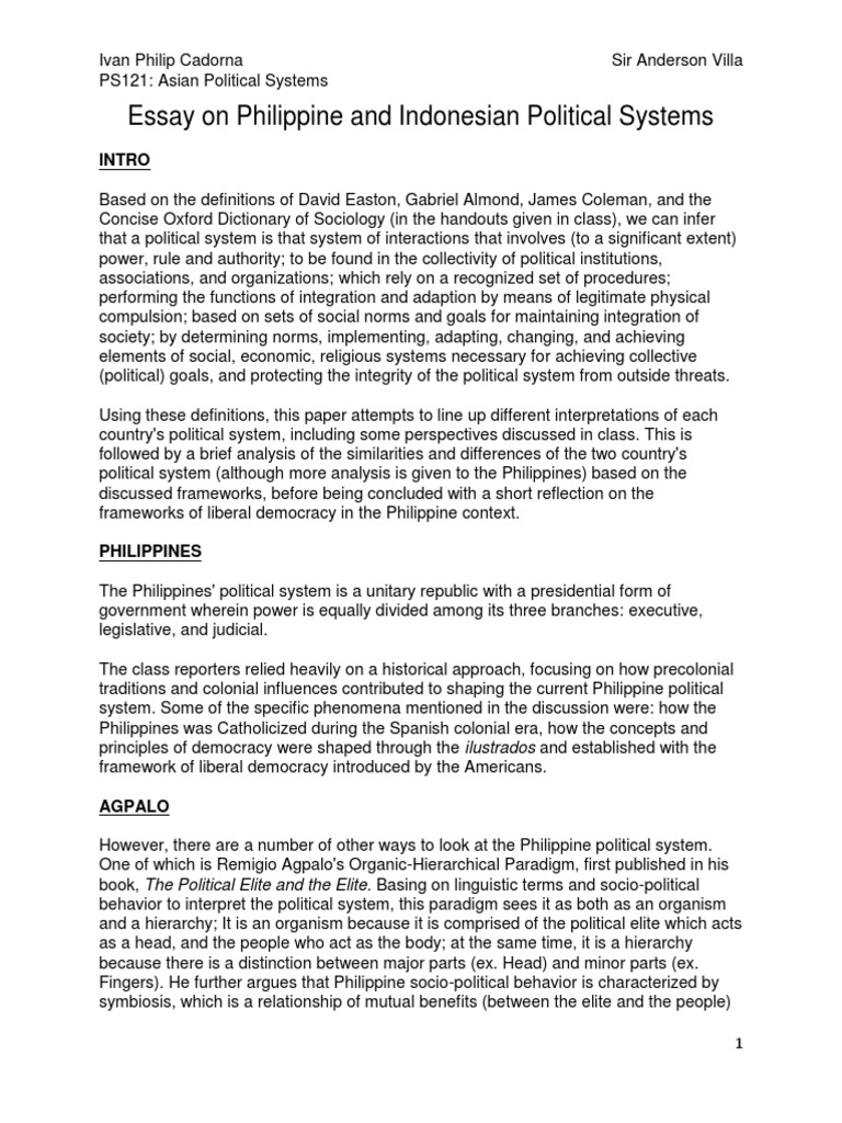 Essay on Philippine and Indonesian Political Systems: Intro | State (Polity) | Democracy