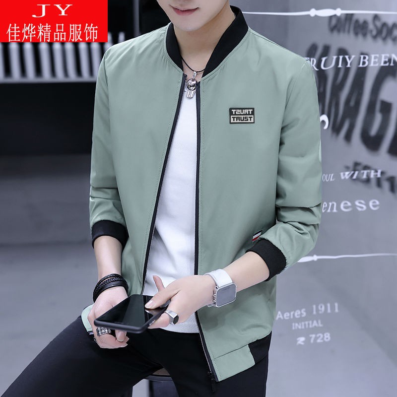 Musim semi gugur 2019 baru pria kerah bisbol versi Korea ramping tren kasual kain komposit jaket | Shopee Indonesia