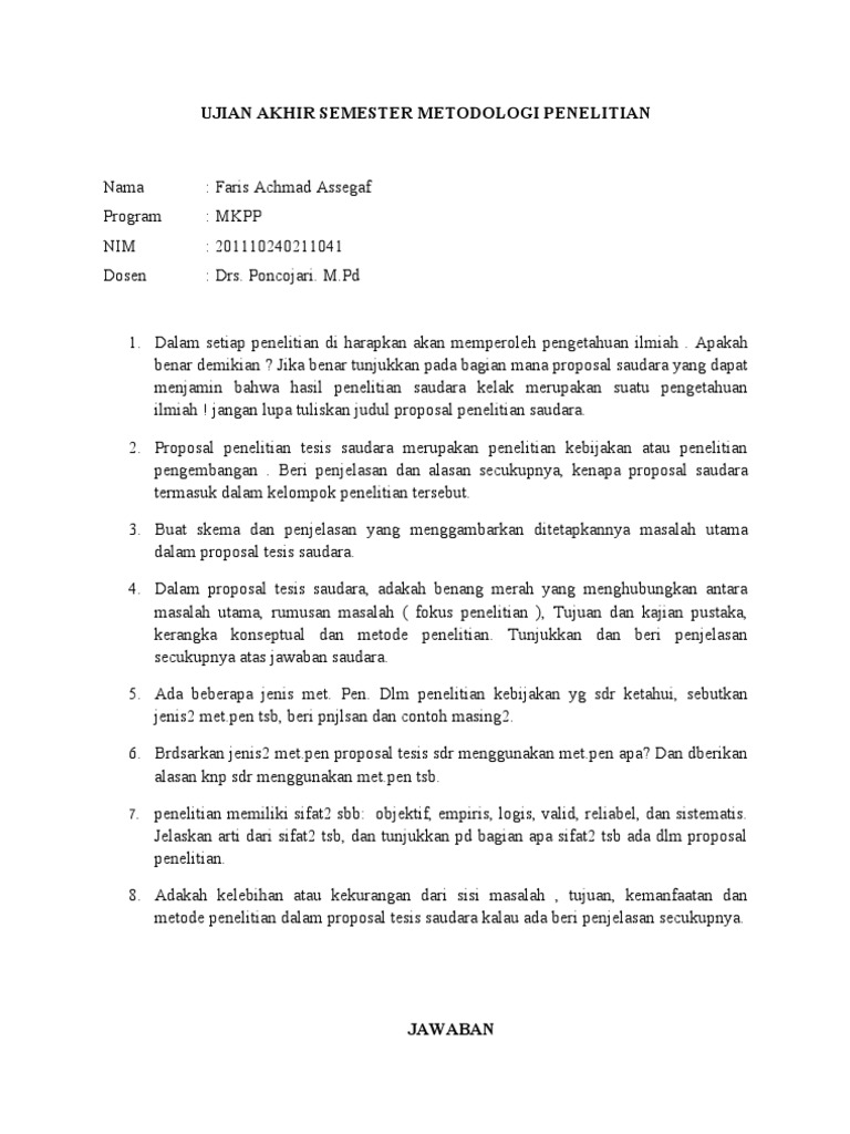 Jawaban UAS Met Pen Faris Achmad Assegaf