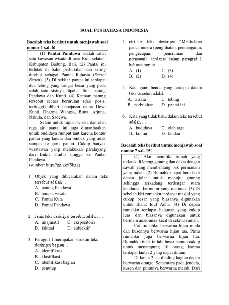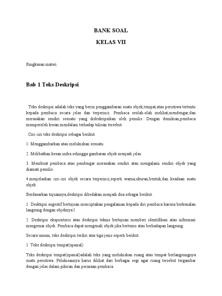 DOC) BANK SOAL KELAS VII Bab 1 Teks Deskripsi | Desry Silaban …
