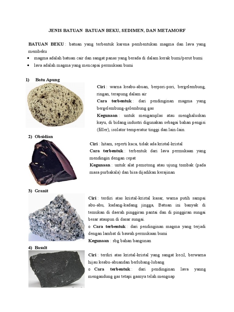 BATUAN BEKU , SEDIMEN , DAN METAMORF LENGKAP BESERERTA CONTOH DAN …