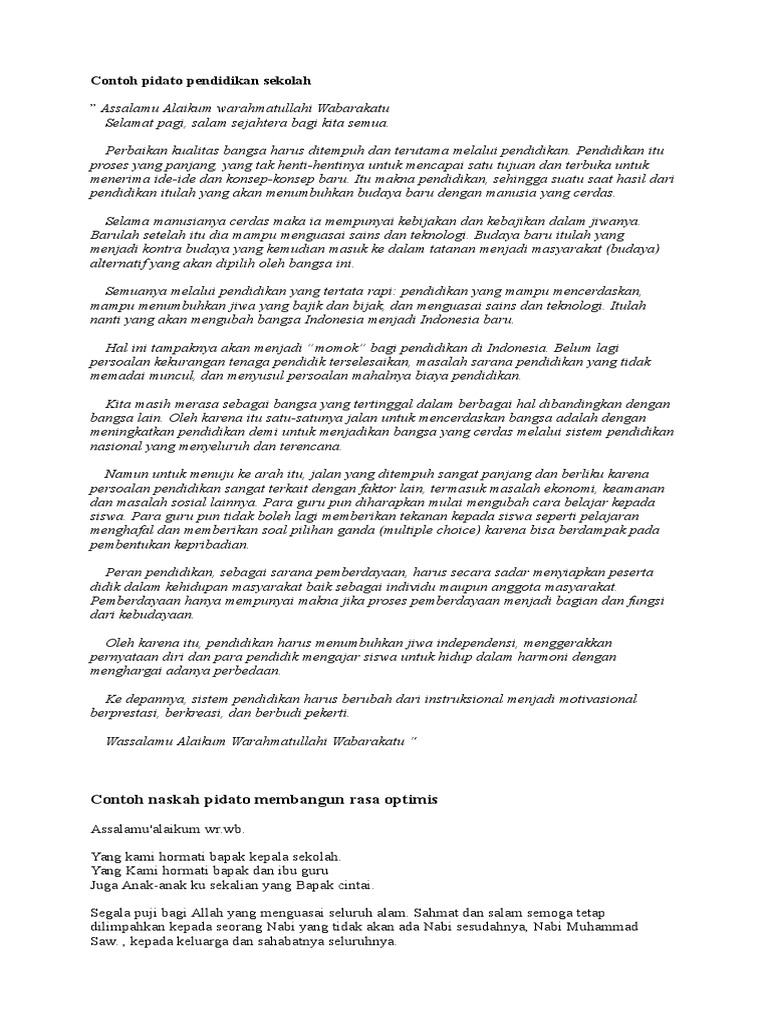 DOC) Contoh Pidato Singkat Pendidikan | indah mokobombang - Academia.edu