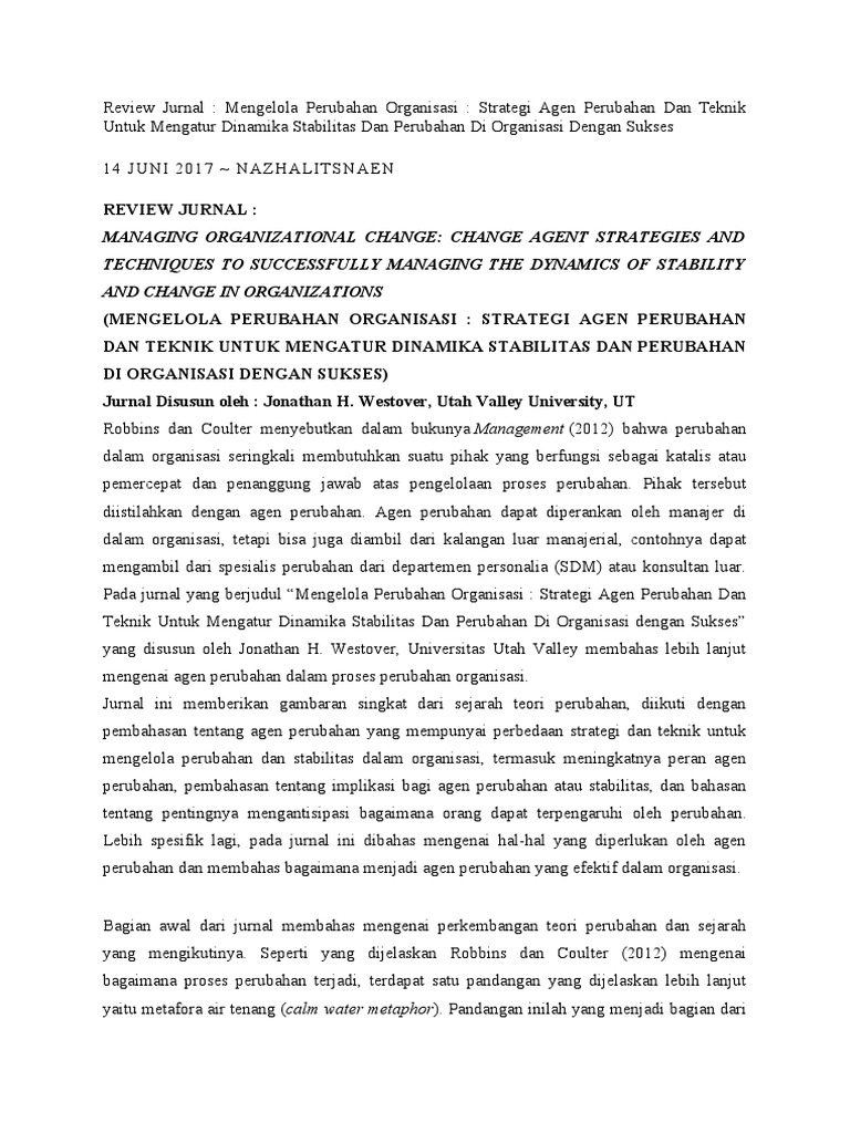 Review Jurnal : Mengelola Perubahan Organisasi : Strategi Agen Perubahan Dan Teknik