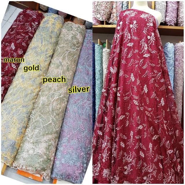Jual Kain brokat tile mutiara renda terbaru. tulle brukat mutiara. tule - maron - Jakarta Pusat - SYIFA KEBAYA | Tokopedia