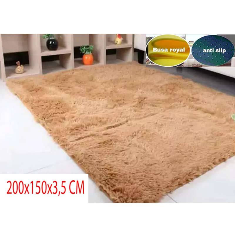 Jual Karpet bulu rasfur 150x100x tebal2.5cm isi busa Royal foam alas kain bintik super anti slip Coklat BERKAH SALUYU
