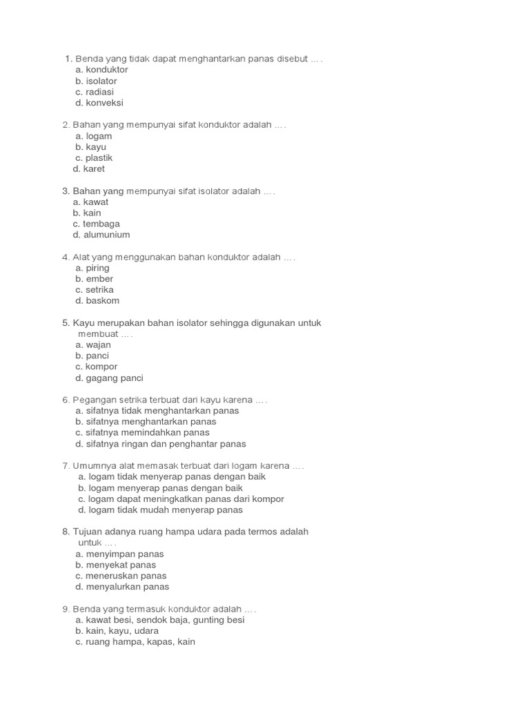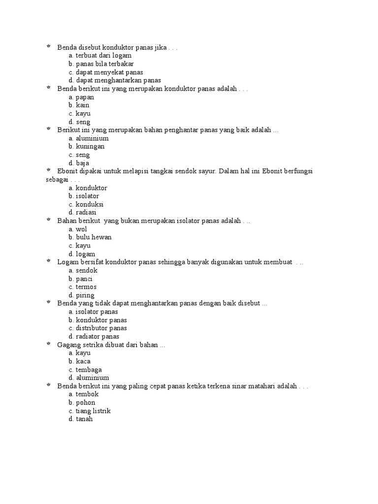 berbagainfo: Soal UH Kemampuan Benda Menghantarkan Panas