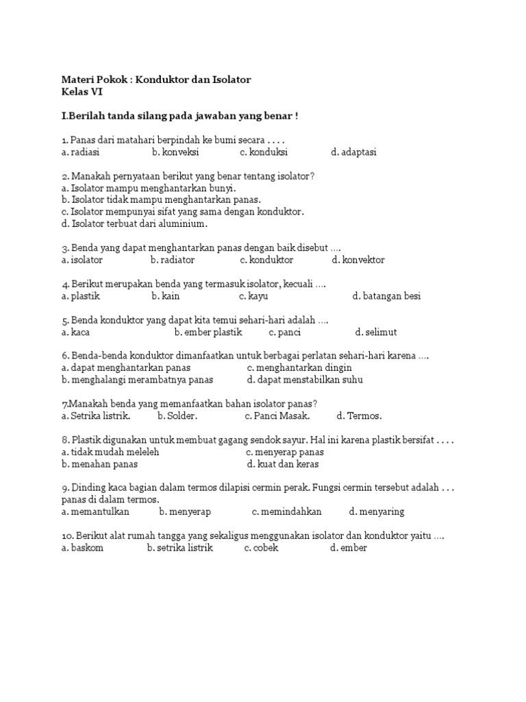 Bahan Konduktor dan Isolator Di sekitarmu terdapat banyak benda dengan berbagai macam bahan. - Brainly.co.id