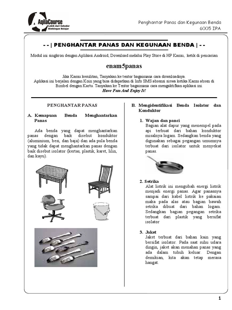 Modul Bimbel Kelas 6 KTSP 6005 IPA Bab 5 Penghantar Panas Dan Kegunaan Benda