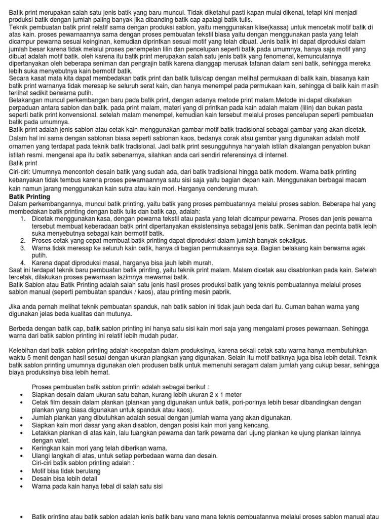 Karya Seni Batik. Pengertian Penjelasan Contoh Laporan Makalah Dalam Format PDF