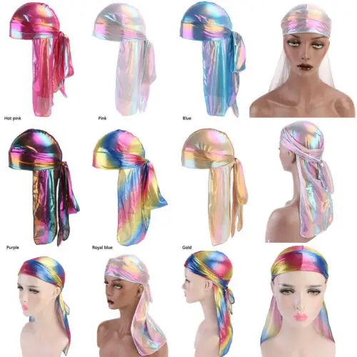 Pria/Wanita Sutra Laser Poliester Bandana Topi Durag Kain Ekor …