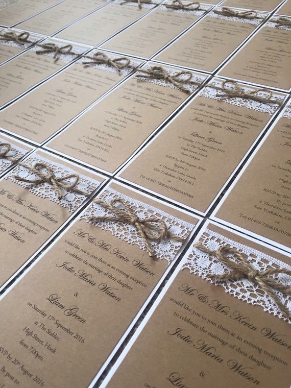 Rustic lace wedding/evening invitation lace twine Kraft | Etsy
