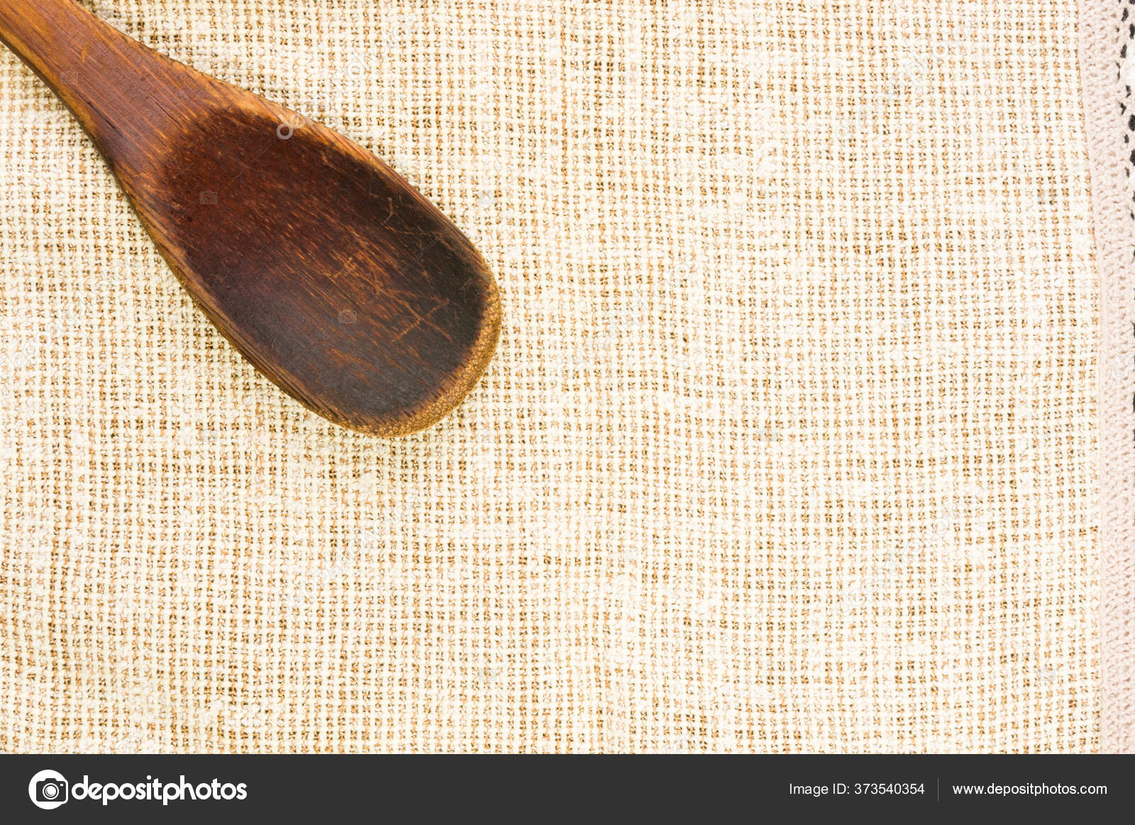 Kain Kanvas Kasar Dan Sendok Kayu Usang Close Latar Belakang — Stok Foto © Wingedbull #373540354