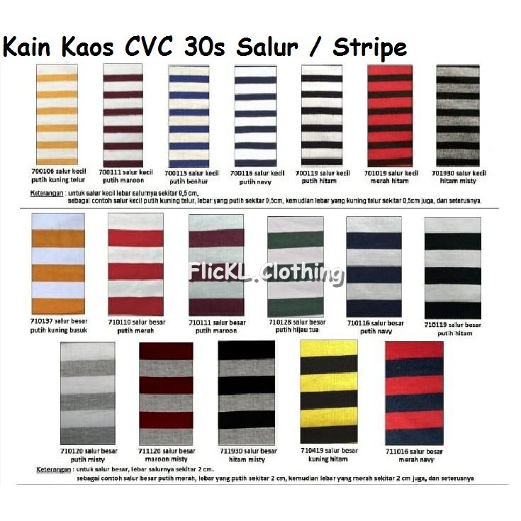 Lagi MURAH!! Bahan Kain Kaos Baju Cvc 30s Salur Stripe Besar Kecil Polos Sablon Diskon,.,.. | Shopee Indonesia