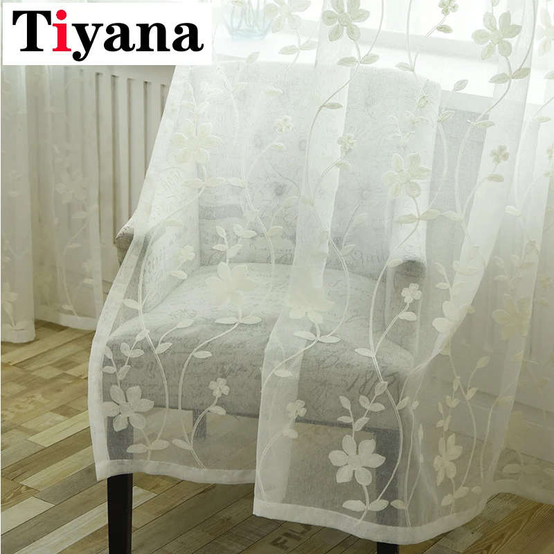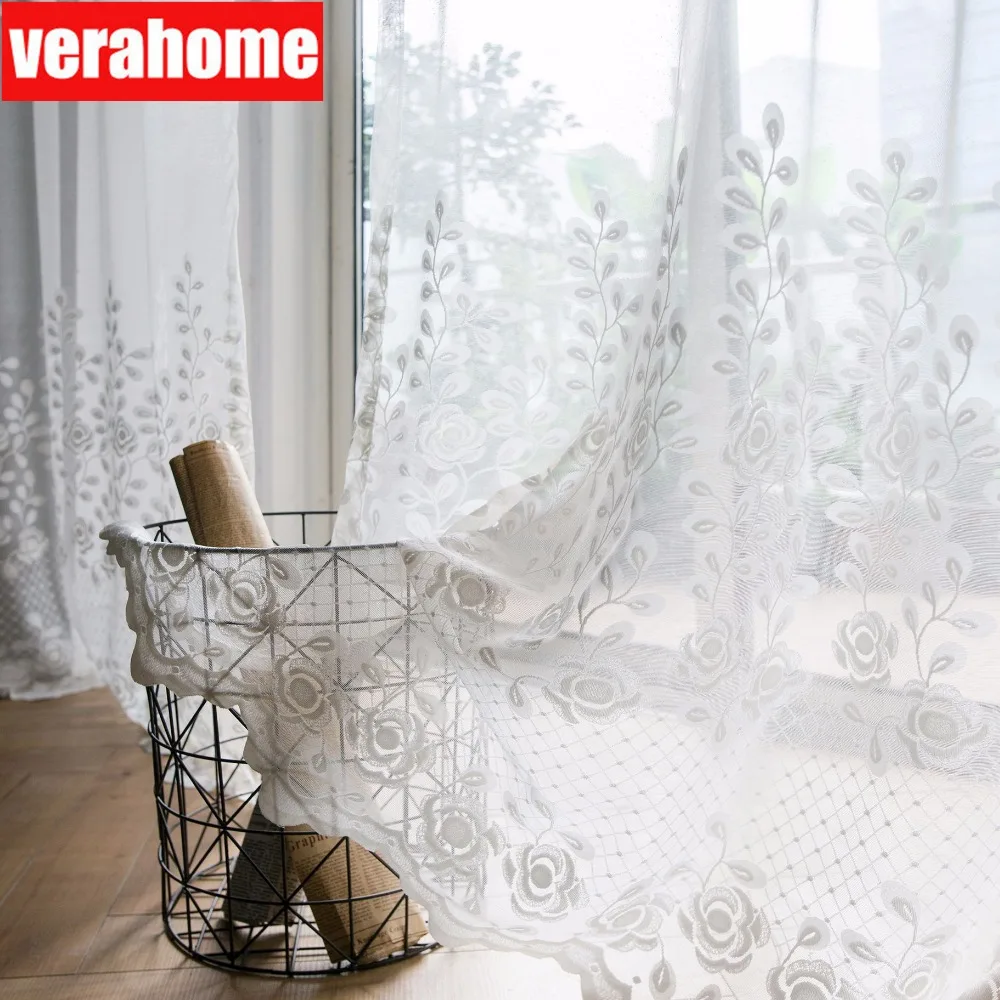 Padat Bordir Putih Bunga Kain Tule Kain Pual Pedesaan Vitrase Gorden untuk Ruang Tamu Kamar Tidur Jendela ZH013X|Tirai| - AliExpress