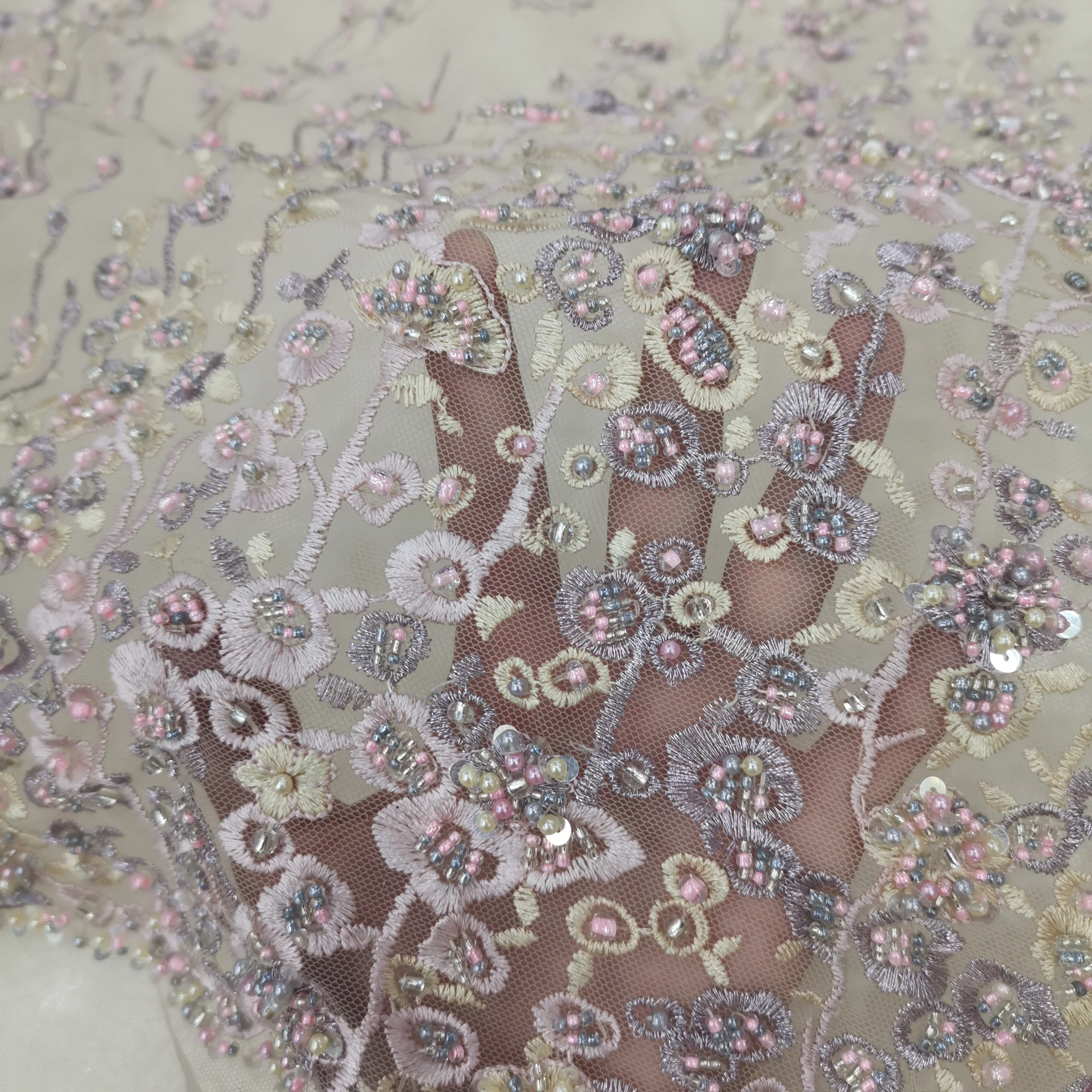 Warna Rose Gold Renda Bordir Kain Buatan Tangan Manik manik Payet …