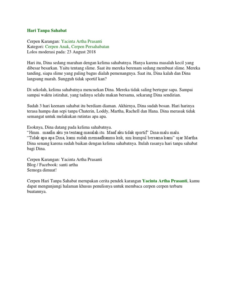 Yacinta Artha Prasanti Cerpen Anak Cerpen Persahabatan: Hari Tanpa Sahabat