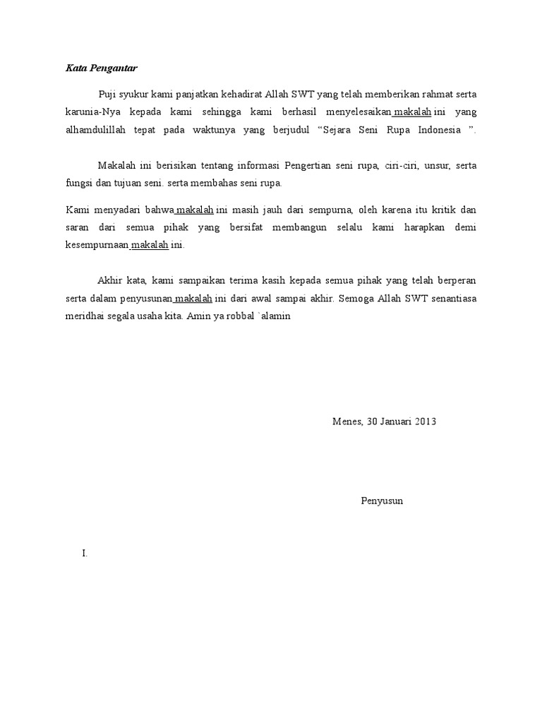 Makalah Seni Rupa - Kata Pengantar Puji syukur kami panjatkan kehadirat Allah SWT yang telah memberikan rahmat serta karunia-Nya kepada kami sehingga | Course Hero