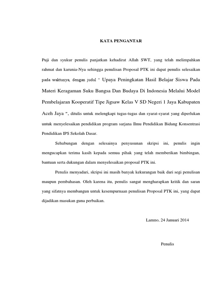 DOC) Contoh KATA PENGANTAR PTK | Jamilah Surahman - Academia.edu