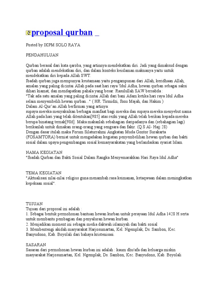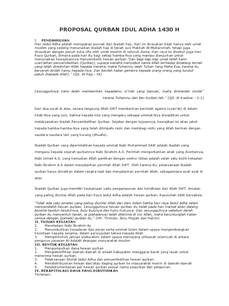 Contoh Proposal Kegiatan Idul Adha 2020 - Nekopencil