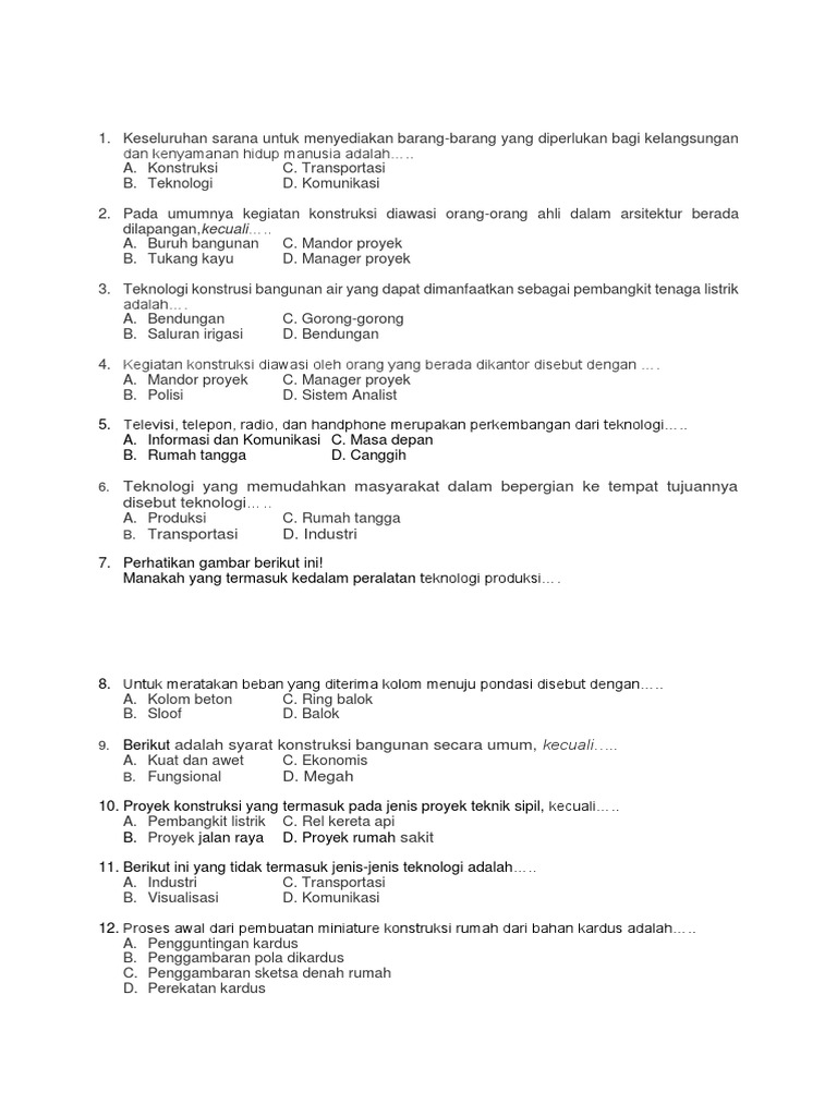 Soal PTS Prakarya Kelas 7 Smt 1 (Rekayasa)