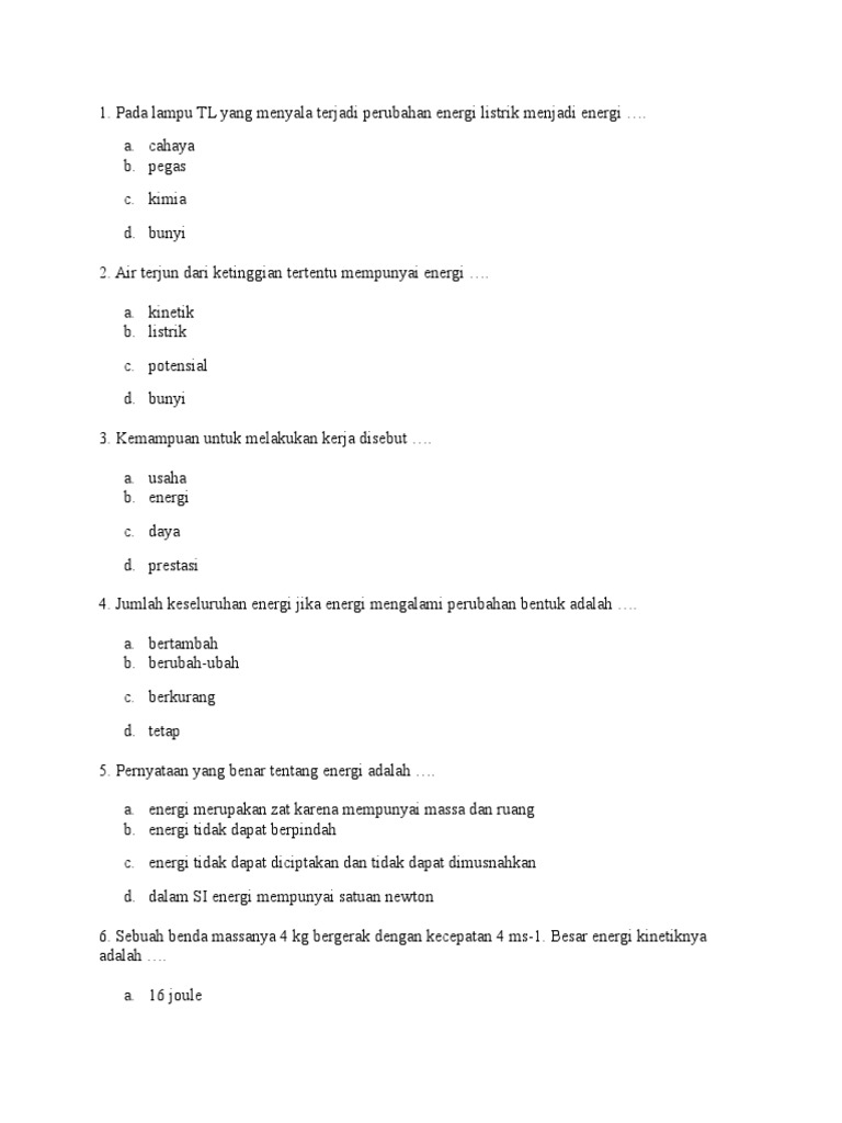pasangan yang benar antara pernyataan dengan perubahan energi yang terjadi ditunjukkan….mohon - Brainly.co.id