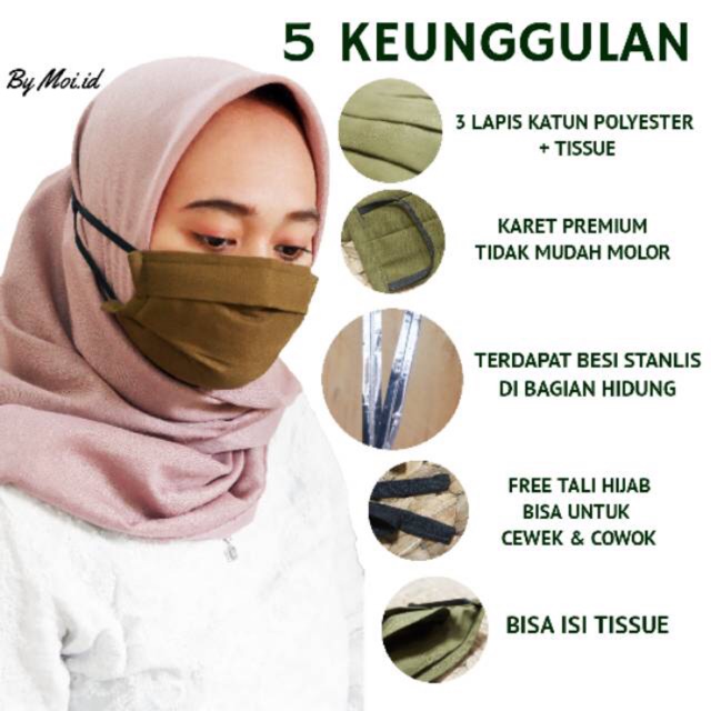 MASKER KAIN 3 FILTER (free tali hijab, isi tissue, 5 warna) | Shopee Indonesia