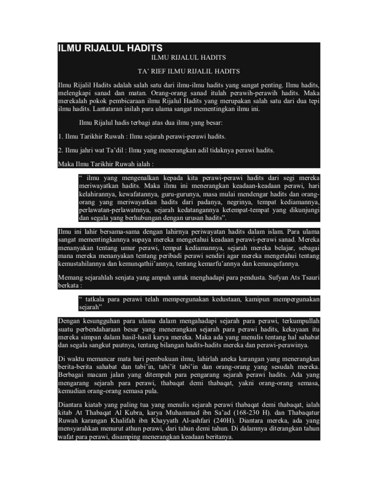 DOC) Studi Kitab Al Majruhin min Al Muhadditsin | fina fatmah - Academia.edu