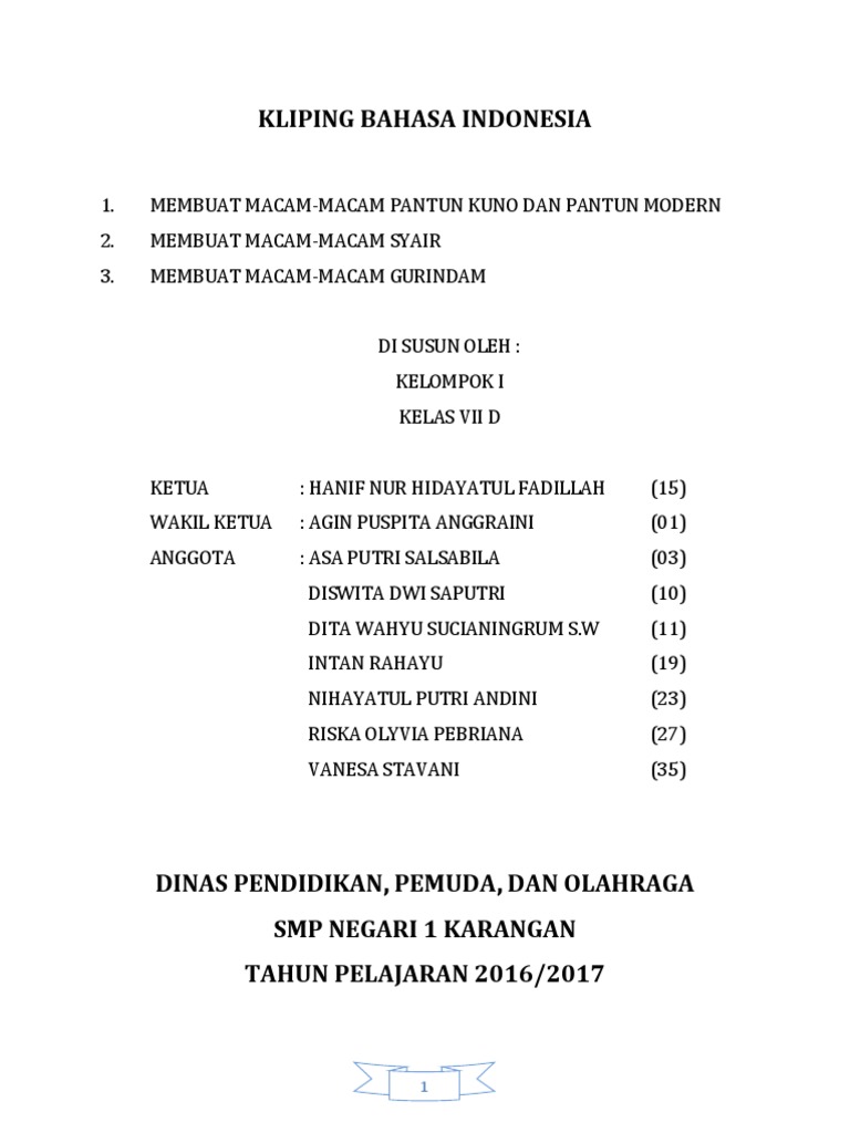 DOC) Kliping Bahasa Indonesia (SAMPUL) | nadilla alfishari - Academia.edu