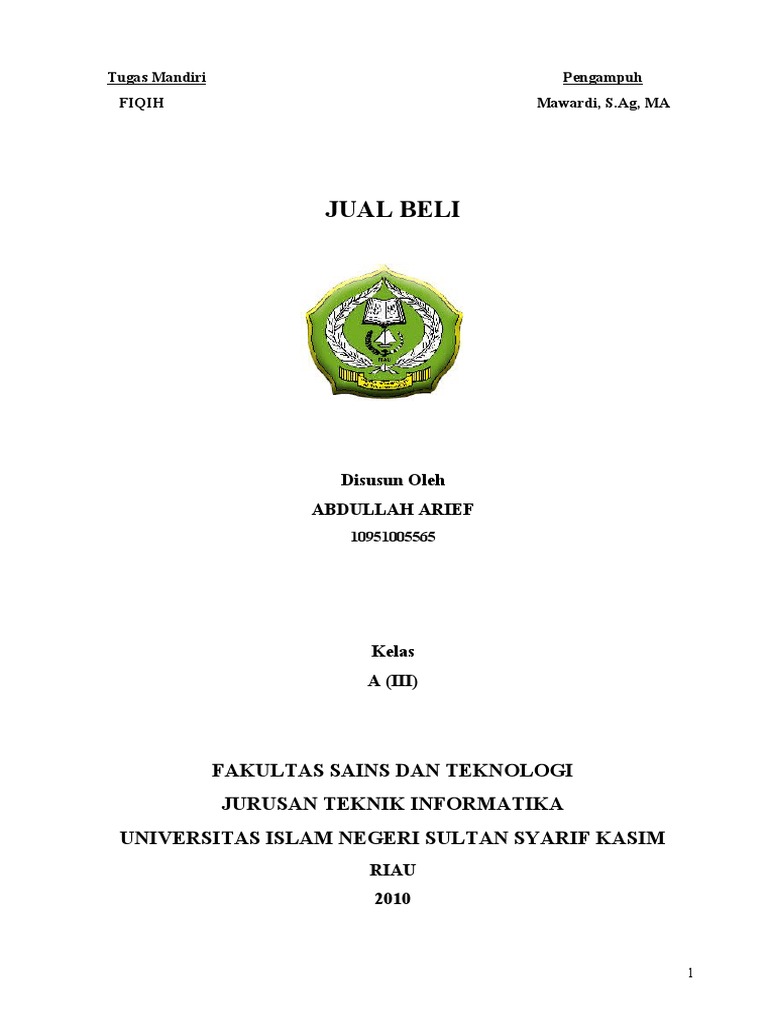 DOC) Makalah Fiqh Muamalah tentang jual beli dalam islam | iskandar rajja - Academia.edu