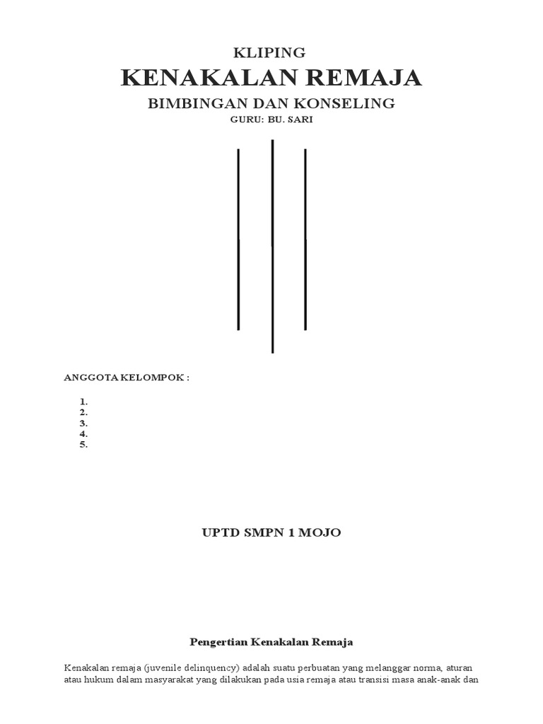 DOC) Makalah Tentang Kenakalan Remaja Nama : Tobroni Kelas : XII IPS 2 Pelajaran : Pendidikan Kewarganegaraan SMA RIMBA MADYA KOTA BOGOR | roni tobroni - Academia.edu